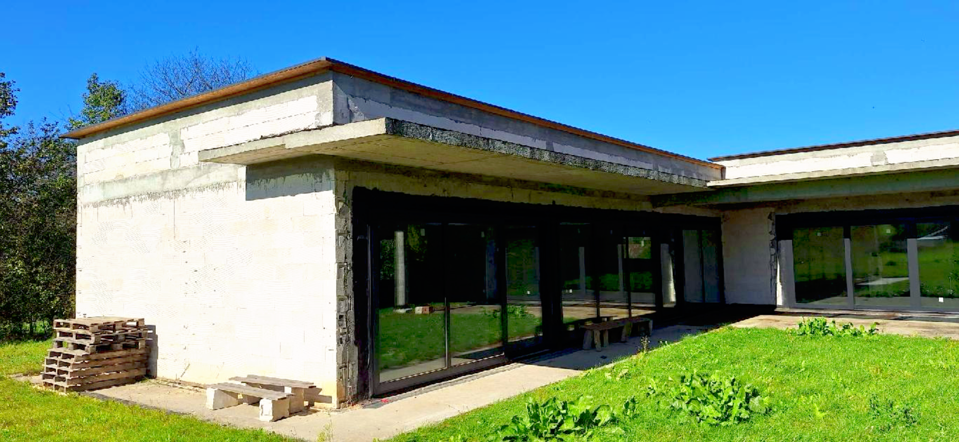 Stan surowy zamknięty – dom z oknami, drzwiami, przygotowany do dalszych prac wykończeniowych.